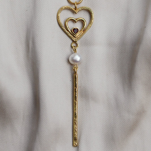 Amor Necklace with Garnet and Pearl