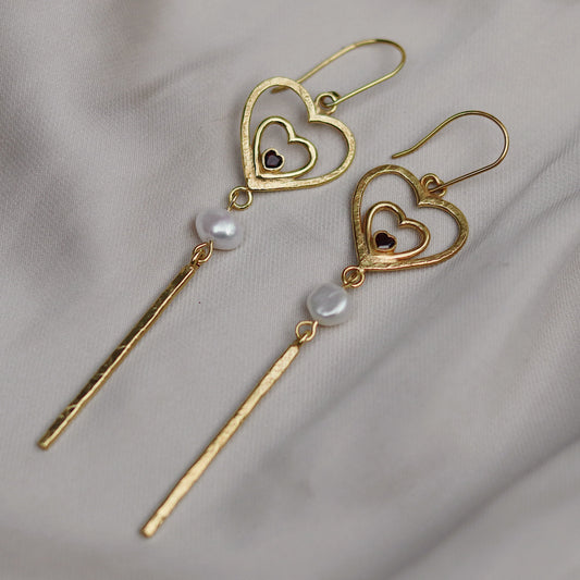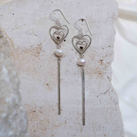 Amor Earrings with Garnet and Pearl