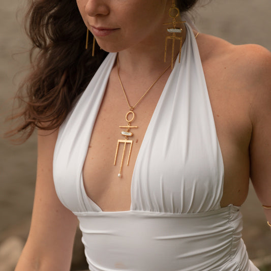 Citlali Necklace with Clear Quartz and Pearl