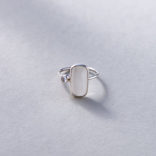 Hetaira Ring with Cream Moonstone and Clearquartz