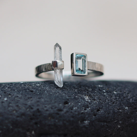 Citlali Opened Ring with Aquamarine and Clearquartz
