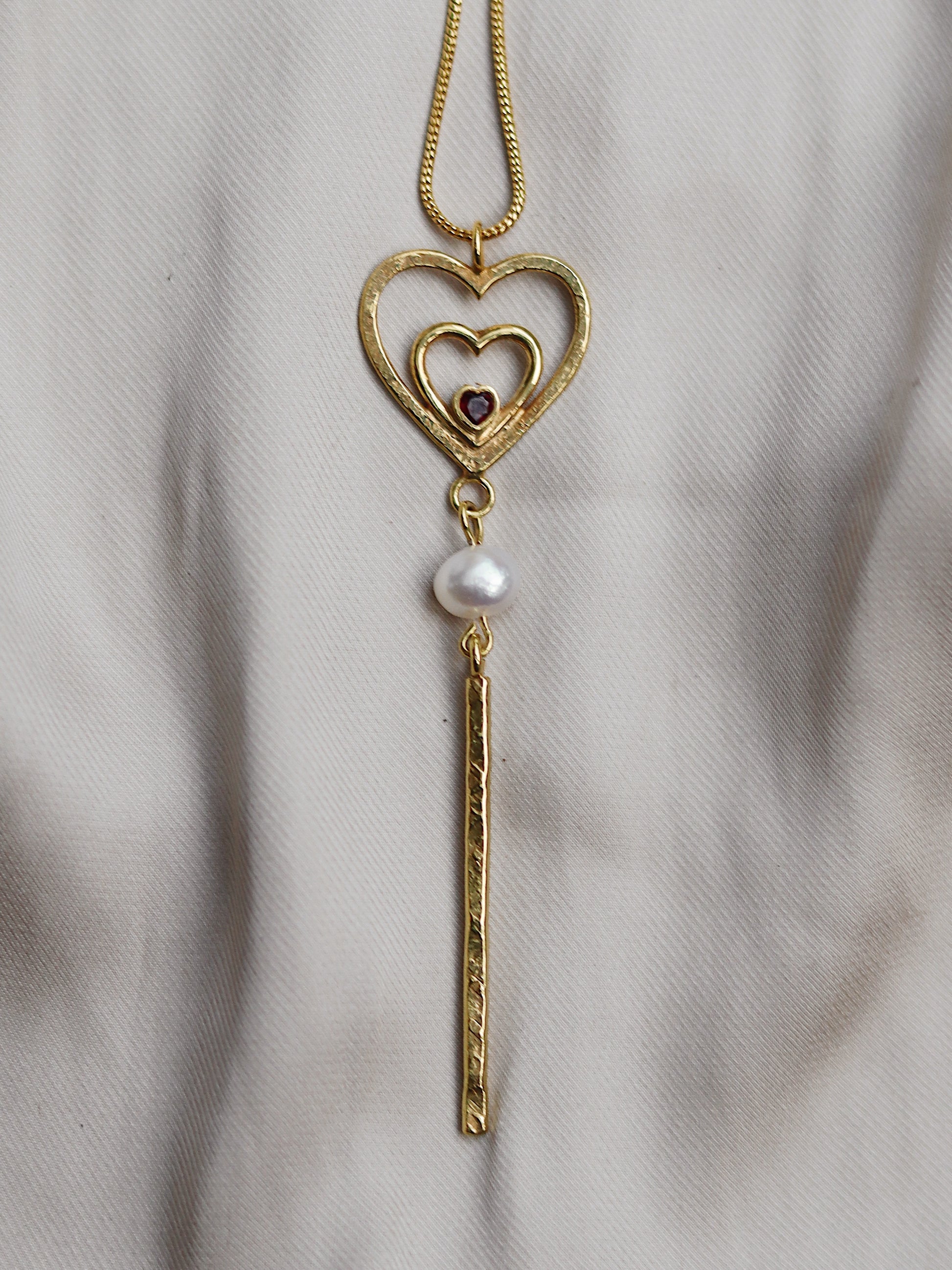 Amor Necklace with Garnet and Pearl