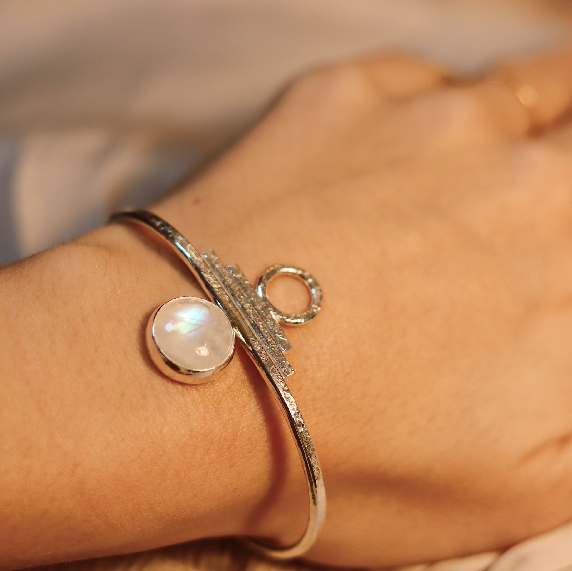 Indah Cuff with Rainbow Moonstone