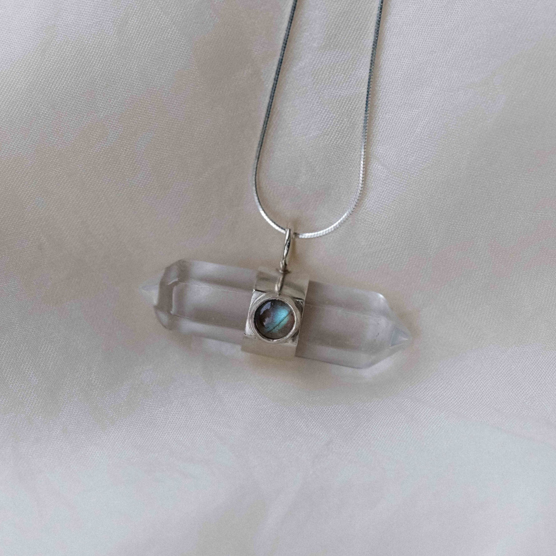 Material: 925 silver, labradorite and clear quartz crystal